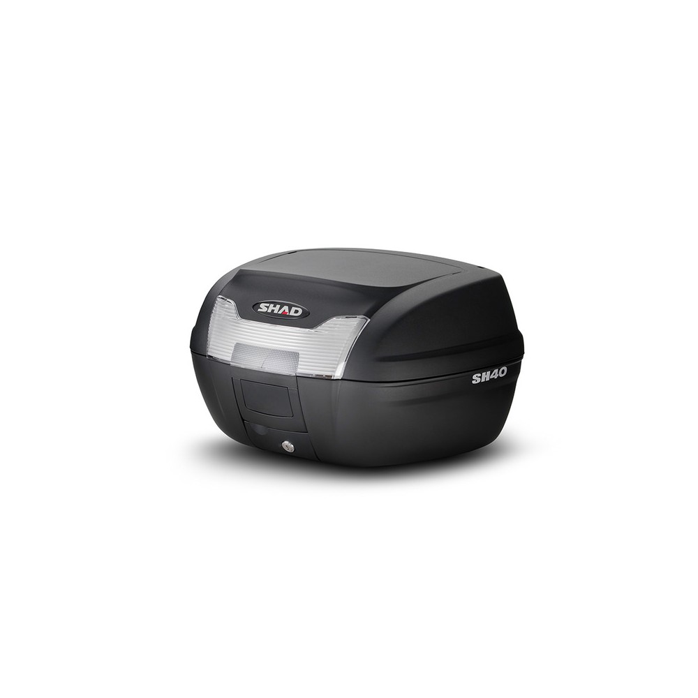 Bauletto Shad SH40Bauletto SH 40 litri comprensivo di piastra Medium; Dim. (LU x LA X AL) 49,5cm X 42,5cm X 29,6cm ACCESSORI: SDC1047 - kit luci stop bauletto; SDC1051 - poggia schiena; SDC1070 - cover blu; SDC1066 - cover argento; SDC1068 - cover bianca; SDC1074 - cover rossa; SDC1072 - cover nera metallizzata; SDR0049 - cover grezza; RICAMBI: SDR0086 - perni cerniera; SDR0079 - kit per montaggio piastra; SDC1043 - kit blocchetto 2 chiavi rosse; SDC2024 - adesivo; SDP0005 - piastra bauletto; SDR0063 - kit meccanismo serratura; SDR0002 - adesivo bordo; SDR0014 - catarifrangenti bauletto; SDR0040 - cordino blocco apertura bauletto; SDR0047 - gommini antivibrazione bauletto.SH40 è un bauletto realizzato in polipropilene rinforzato di alta qualità. Molto robusto e compatto, protegge il carico dagli urti e dalle intemperie. La sua capacità di 40 litri garantisce spazio sufficiente per un casco integrale o due caschi jet.erni cerniera; SDR0079 - kit per montaggio piastra; SDC1043 - kit 3 pz blocchetto e chiavi; SDC2024 - Dispone del sistema \"Handle Lock System\", una serratura che permette contemporaneamente di chiudere il bauletto e di fissarlo alla moto. Dispone inoltre di una pratica maniglia, che rende la rimozione ed il trasporto del bauletto particolarmente comodi. Internamente è equipaggiato con cinghie elastiche, per mantenere il carico in ordine. Come tuttii bauletti SHAD, può essere aperto e chiuso con una sola mano, senza l\'utilizzo della chiave, necessaria soltanto quandovogliamo fissare il bauletto alla piastra sulla moto. La fessura alla base del catadiottro funge da maniglia ergonomica,per facilitare il trasporto del bauletto.Altri riferimenti: D0B40100