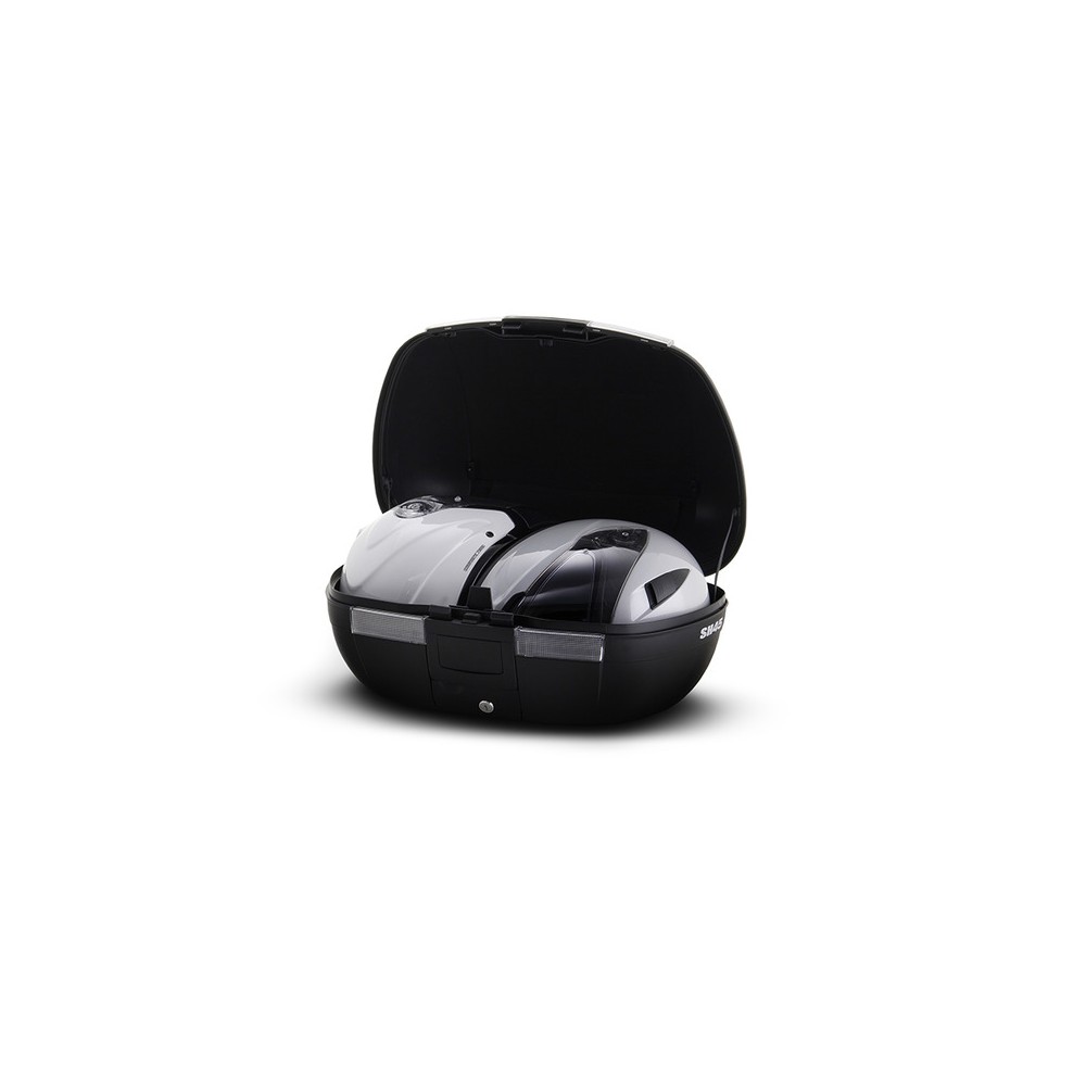 Bauletto Shad SH45Bauletto SH 45 litri comprensivo di piastra Medium; Dim. (LU x LA X AL) 56,4cm X 41cm X 31,4cm ACCESSORI: SDC1005 - borsa interna bauletto; SDC1051 - poggia schiena; SDC1047 - kit luci stop bauletto; SDC1080 - coverblu; SDC1076 - cover argento; SDC1078 - cover bianca; SDC1086 - cover rossa; SDC1082 - cover nera metallizzata ; RICAMBI: SDR0086 - perni cerniera; SDR0079 - kit per montaggio piastra; SDC1043 - kit blocchetto e 2 chiavi rosse; SDC2027 - adesivo; SDP0005 - piastra bauletto; SDR0063 - kit meccanismo serratura; SDR0002 - adesivo bordo; SDR0040 - cordino blocco apertura bauletto; SDR0047 - gommini antivibrazione bauletto; SDR0095 - set cinghie elastiche interne; SDR0017 - catarifrangenti bauletto.SH45 è un bauletto molto capiente e robusto. Realizzato in polipropilene rinforzato di alta qualità, protegge il carico dagli urti e dalle intemperie. Con le sue forme arrotondate ed il catadiottro centrale sfumato, può contenere fino a duecaschi integrali ed ha le dimensioni perfette sia per muoversi in città che per viaggi più lunghi, in moto o in scooter.Dispone del sistema \"Handle Lock System\", una serratura che permette contemporaneamente di chiudere il bauletto e di fissarlo alla moto. Dispone inoltre di una pratica maniglia, che rende la rimozione ed il trasporto del bauletto particolarmente comodi. Internamente è equipaggiato con cinghie elastiche, per mantenere il carico in ordine. Come tuttii bauletti SHAD, può essere aperto e chiuso con una sola mano, senza l\'utilizzo della chiave, necessaria soltanto quandovogliamo fissare il bauletto alla piastra sulla moto. La fessura alla base del catadiottro funge da maniglia ergonomica,per facilitare il trasporto del bauletto.Altri riferimenti: D0B45100