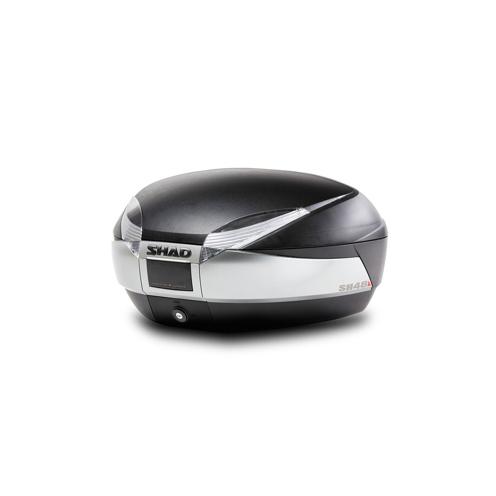 Bauletto Shad SH48 TitanioBauletto SH 48 litri titanio comprensivo di piastra Big; Dim. (LU x LA X AL) 61cm X 46cm X 31cm ACCESSORI: SDC1005 - borsa interna bauletto; SDC1059 - poggia schiena; SDC1047 - kit luci stop bauletto; SDC1067 - portapacchi; SDC1094 - cover grigio scura; SDC1095 - cover titanio; SDC1093 - cover carbonio; SDC1092 - cover bianca; RICAMBI: SDP0006 - cover piastra bauletto; SDR0079 - kit per montaggio piastra; SDR0069 - kit meccanismo serratura con chiave rossa; SDR0068 - kit meccanismo serratura con chiave nera; SDC2031 - adesivo; SDR0040 - cordino blocco apertura bauletto; SDR0097 - set cinghie elastiche interne; fascia laterale titanio SDR0045; SDR0085 - perni cerniera; SDR0048 - gommini antivibrazione bauletto; SDC1037 - kit blocchetto e 2 chiavi rosse; SDC1036 - kit blocchetto e 2 chiavi nere; SDR0055 - guarnizione bauletto; SDR0020 - catarifrangenti bauletto.Il bauletto per moto SH48 New Titanium è un prodotto di fascia alta, con tutte le esigenze del mercato e le massime prestazioni. Con una capacità di due caschi modulari e un peso di 3,7 Kg di bagagliaio, è il bauletto più Leggero sul mercato in tronchi ad alta capacità, riducendo così le vibrazioni, facendo soffrire meno i supporti e il telaio dellan motocicletta. Il telaio strutturale garantisce elevata rigidità e resistenza con un peso minimo. a Offre la massima sicurezza grazie al suo innovativo sistema di chiusura ermetica \"Smart Lock System\", un sistema con - maniglia a scomparsa automatica e chiusura ermetica in 3 posizioni. Questo sistema ti consente di tenere aperta la valigia senza poterla rimuovere, oltre a poterla aprire e chiudere senza la necessità della chiave, in questo modo utilizzerai solo la chiave per bloccarla. Apertura con una mano.Altri riferimenti: D0B48400