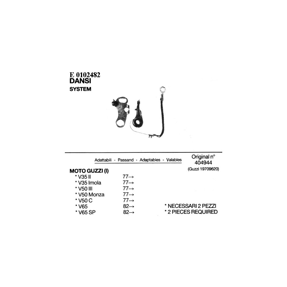 Contact BreakersApplications: Moto Guzzi V35 Imola/II 77-; V50 Monza/C 77-; V65 /SP 82-Original Reference: DA.404944;GU.19709620Other reference: 2482Le descrizioni dei prodotti sono generate automaticamente dal nostro Flavio AI . Se notate eventuali imprecisioni o desiderate maggiori dettagli, non esitate a contattarci via Email.