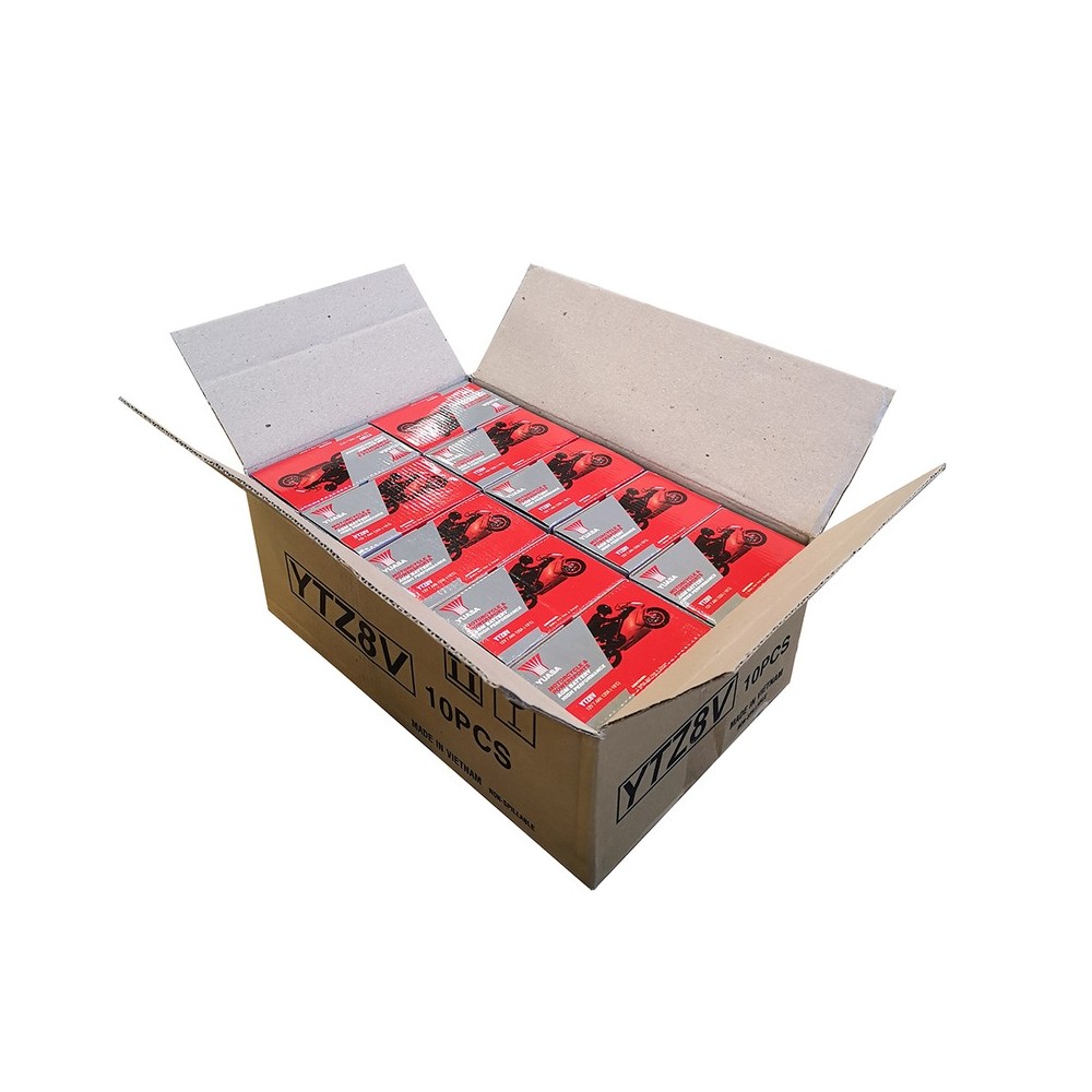 Scatola 10PZ Batteria YUASAYTZ8V Precaricata SigillataSigillata/ermetica, precaricata (attivata in fabbrica - Factory Activated); 12 V 7,4 Ah 113x70x130 mm; Acido - l; Corrente carica 0,70 A; CCA 120Applicazioni: Honda SH 125/150i ESP 13-17; PCX 125/150 ESP 12-16; CBR250R 11-13; CBR300R 15-16; Yamaha YZF R3 320 15-; MT-03A 320 16-;Altri riferimenti: YTZ8VLos costos de envío se mostrarán después de ingresar la dirección de entrega.