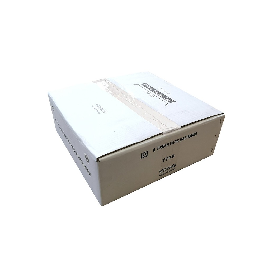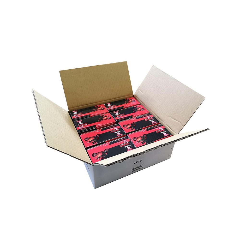 Scatola 8PZ Batteria YUASAYT9B Precaricata SigillataSigillata/ermetica, precaricata (attivata in fabbrica - Factory Activated); 12 V 8 Ah 150x69x105 mm; Acido 0,40 l; Corrente carica 0,80 A; CCA 120Applicazioni: Yamaha Majesty 400 04-06; T-Max 500 01-07; TT RE 600 03-04; YZF R6 600 01-06; MT-03 660 06-; XT R/X 660 04-; YZF R7 750 99-00Altri riferimenti: YT9BSpedizioni gratuite in tutta Italia per ordini superiori a € 99